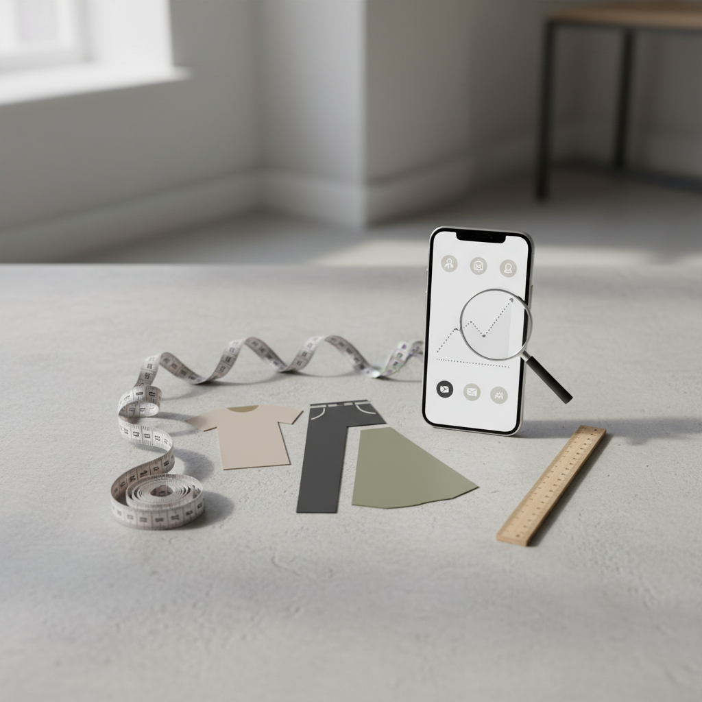 - Loe tootematerjali kirjeldust: Siit selgub, kas riie on jäik või elastne, õhuke või paksem – see mõjutab oluliselt istuvust.