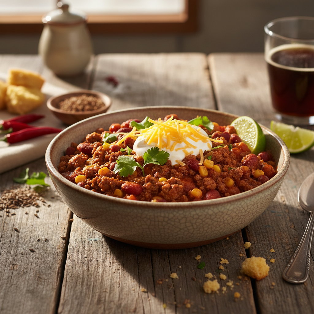 Paljud inimesed arvavad ekslikult, et chili con carne on Mehhiko rahvusroog. Tegelikkuses on selle juured sügaval Texase osariigis Ameerika Ühendriikides, olles seega klassikaline Tex-Mex köögi esindaja. Nimi ise tähendab hispaania keeles lihtsat “tšillit lihaga”. Kuigi retsepte on tuhandeid ja igal kokal on oma “salajane” koostisosa, taandub tõeliselt hea tšilli kolmele põhielemendile: kvaliteetne tooraine, õiged vürtsid ja kannatlikkus.