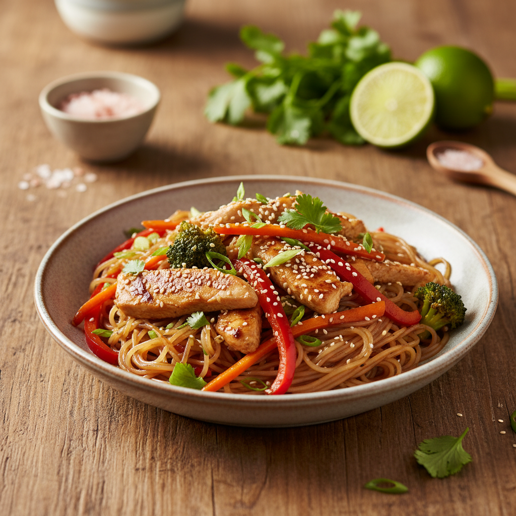 Lihtne riisinuudlite retsept kana ja köögiviljadega